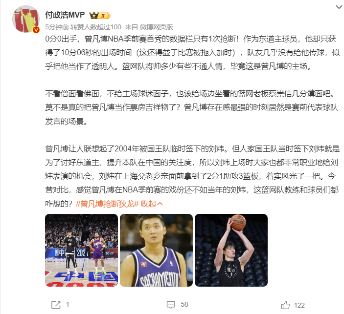 媒体人热议曾凡博首秀:根本没人传球 防守很努力了 检验不出实力